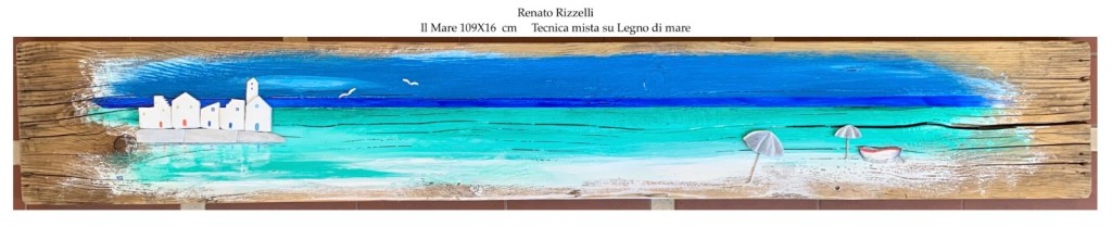 Non solo sassolini ma anche cocci levigati dall’acqua, legni, vetri di mare e ceramiche compongono piccoli e grandi quadri nelle opere a quattro mani prodotte con il compagno di vita e lavoro Renato Rizzelli, dove i due artisti si confrontano in un percorso partecipativo stimolante e arricchente.